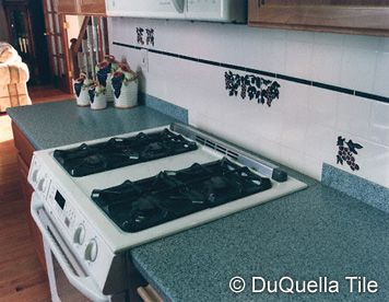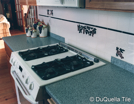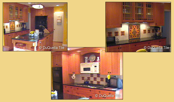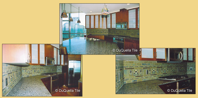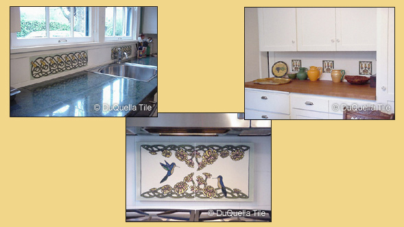 DuQuella Tile designed tiles for my kitchen. Not only are the tiles works of art, but working with them was a delight as they took the time to understand what I was imagining. I'm admittedly fussy about color, but their ability to custom-make the color palette was up to the challenge. Because of their creative ideas, each area of the kitchen now has distinct and different tiles that are related through design and color. It was a pleasure working with them and the results are the focal point of our newly remodeled kitchen.